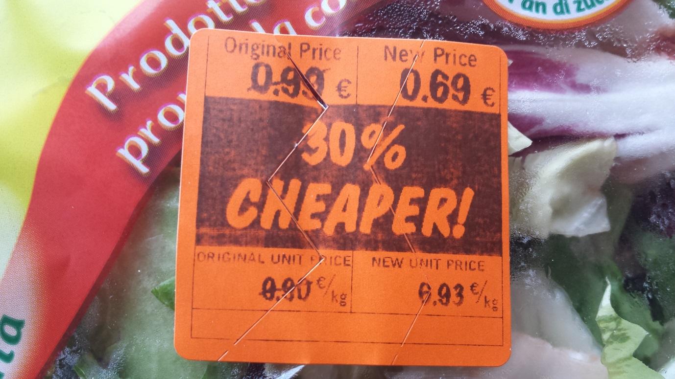 O que é a etiqueta cor-de-laranja? É a etiqueta que, no meu supermercado de eleição, significa que o produto está com 30% de desconto por aproximação do prazo de validade. A maior parte dos super e hipermercados utiliza algum tipo de oferta ou promoção para escoar produtos com maior proximidade da data de validade, sejam os descontos directos em percentagem, os "leve 2 pague 1" ou outros.